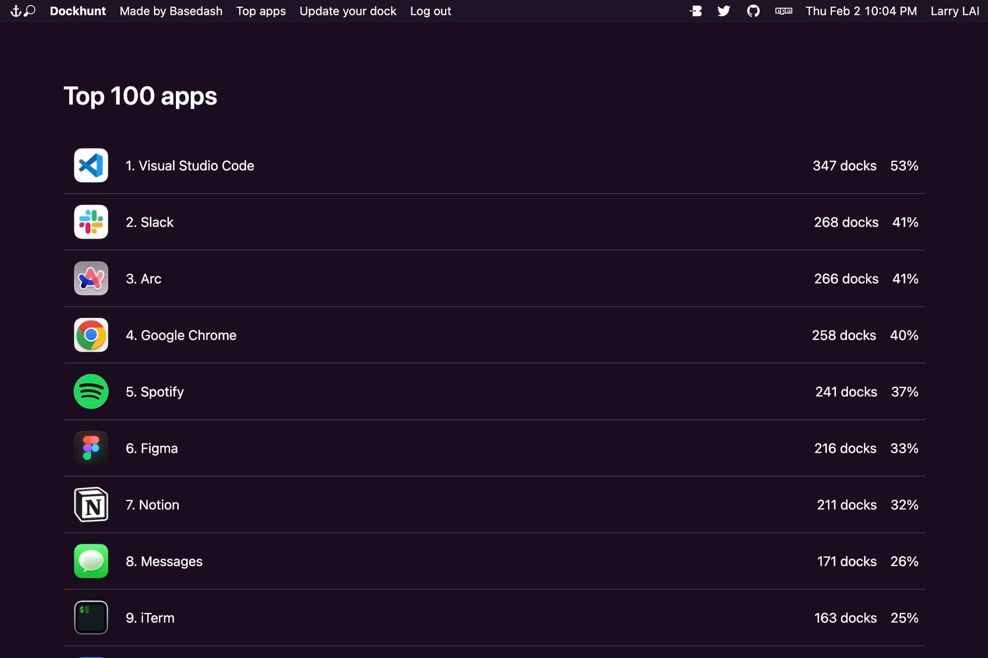 另外如果你想要分享自己的 Dock 也很簡單,可以到這個頁面下載 Dockhunt 的 app,啟動執行他並且登入 Twitter 後他就會幫你上傳到網站上了。