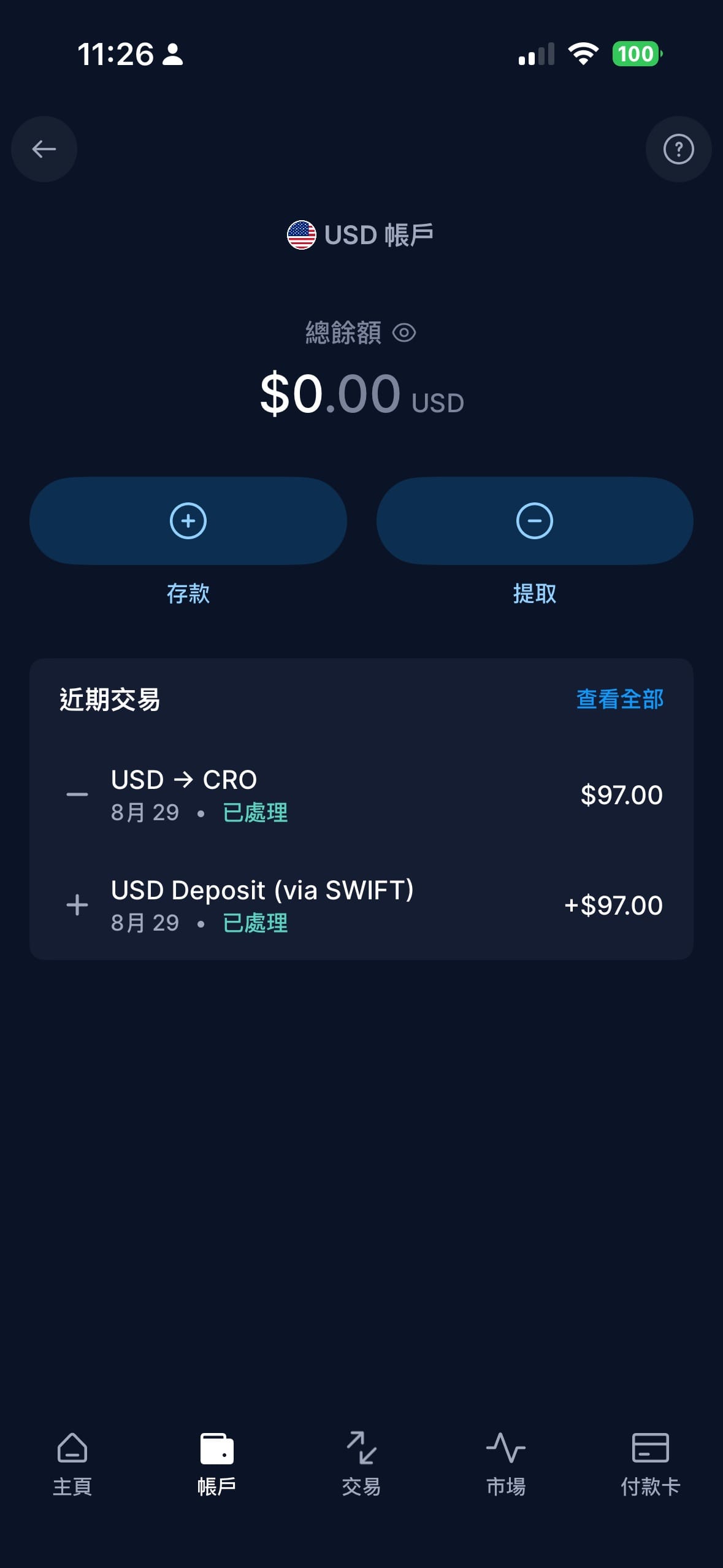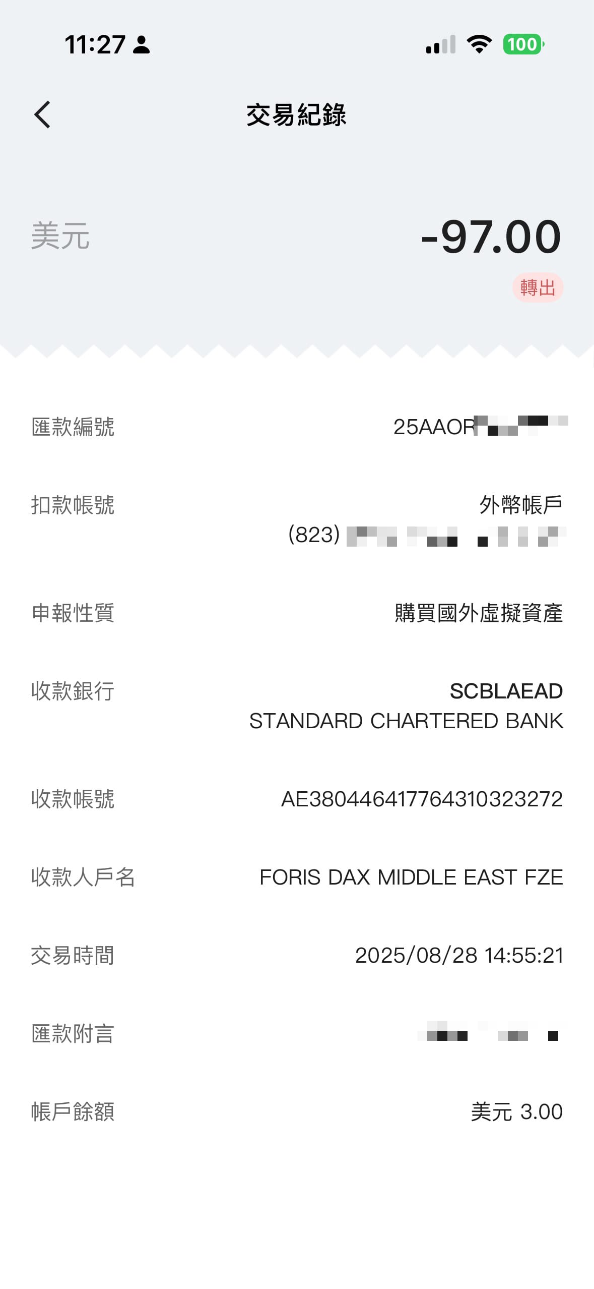 第一次入金的話建議還是先小額嘗試能不能轉帳成功,像我是先試 US$97,若能成功的話再轉比較大筆的比較安全。