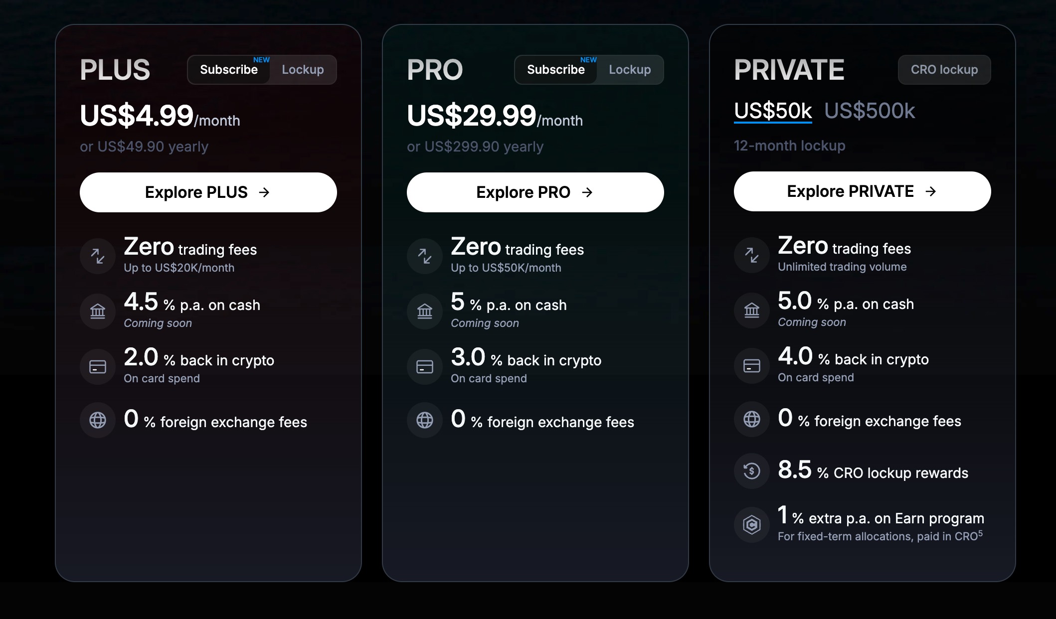 Crypto.com 不同卡等的優惠